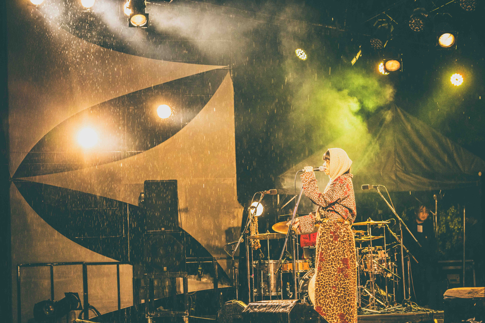そこからセルシーSTAGEは、柴田聡子さん、iriさん、KIRINJIさん、大貫妙子さん、HALLO’S STAGEは、YOGEE NEW WAVES、長岡亮介さん、岸田繁さん(くるり)、真心ブラザーズという幅広い世代を魅了する実力派ミュージシャンが次々に登場。雨も降り出した会場を盛り上げていきます。この日のトリを務めたのはUAさん。会場のある吹田市出身で、日本を代表する歌姫の1人です。ギターのカッティングが響き始めると、UAさんの「行くぞ!」の声で、「太陽手に月は心の両手に」からライブがスタート。次々とパワーあふれる曲を会場に放っていきます。MCでは、今年がデビュー30周年であることを明かし、会場や「大阪のみんな」に感謝を伝えると、止まない雨の中でライブに参戦しているオーディエンスに「Happy」、「ALK」などの新曲を届けていきます。「甘い運命」のあとは「どうかUAの熱で風邪引かないでね」とメッセージを送り、一旦舞台を降りますが、アンコールの声に「もう1曲だけやろうかな?」と再登場。ラストは「ミルクティー」で締めくくりました。