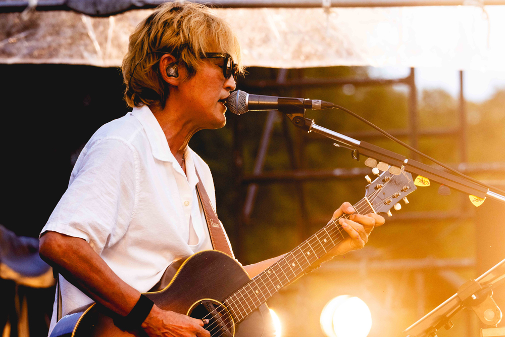 そこから川崎鷹也さん、家入レオさん、ビッケブランカさん、高橋優さんといったメンバーが次々に登場。それぞれが個性的な歌声を響かせ、会場を沸かせます。この日のトリを務めたのはスガ シカオさん。ストリングスをバックに「これから むかえにいくよ」で会場をグルーブさせると、一転2曲目の「黄金の月」では静かなバラードを力強く歌い上げます。会場は涼しい風が抜け、夕暮れが近づく時間。夕日が差し込むステージからは、透明感のある声とストリングスの音が空に放たれ、まさにチルなときが過ぎていきます。「ストーリー」や「Progress」などのヒットチューンもプレイされると、母親に捧げたというナンバー「ヤグルトさんの唄」で締めくくります。そして、会場からのアンコールの声に応えると「夜空ノムコウ」を聴かせました。