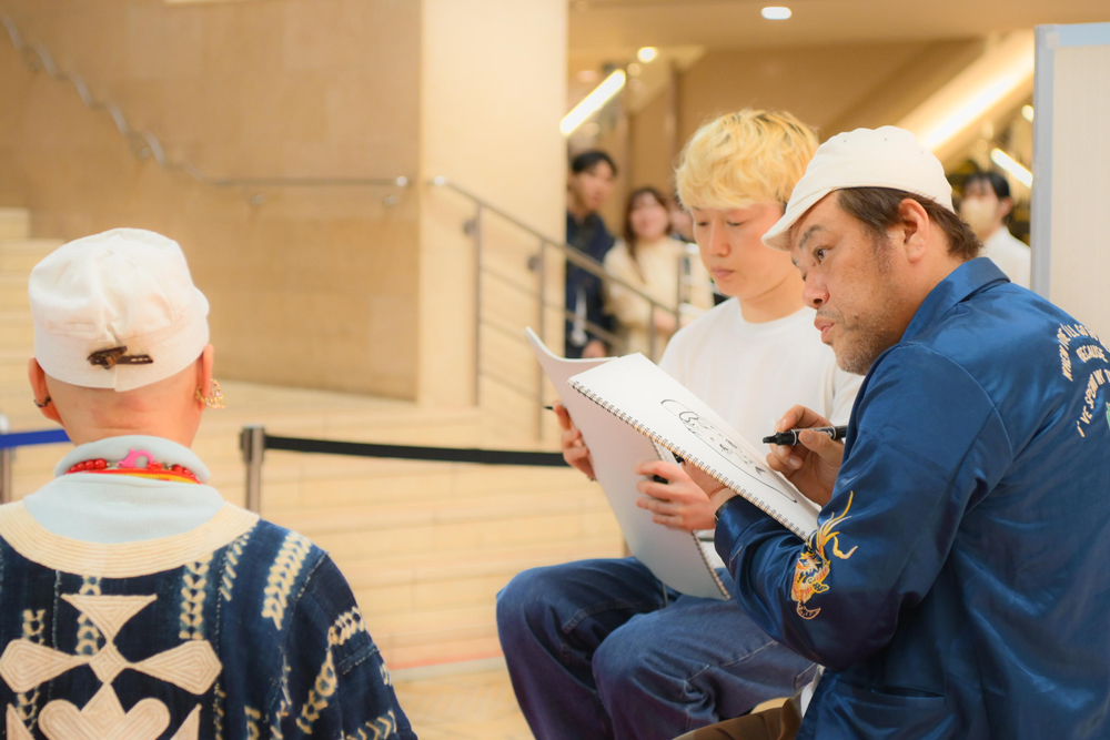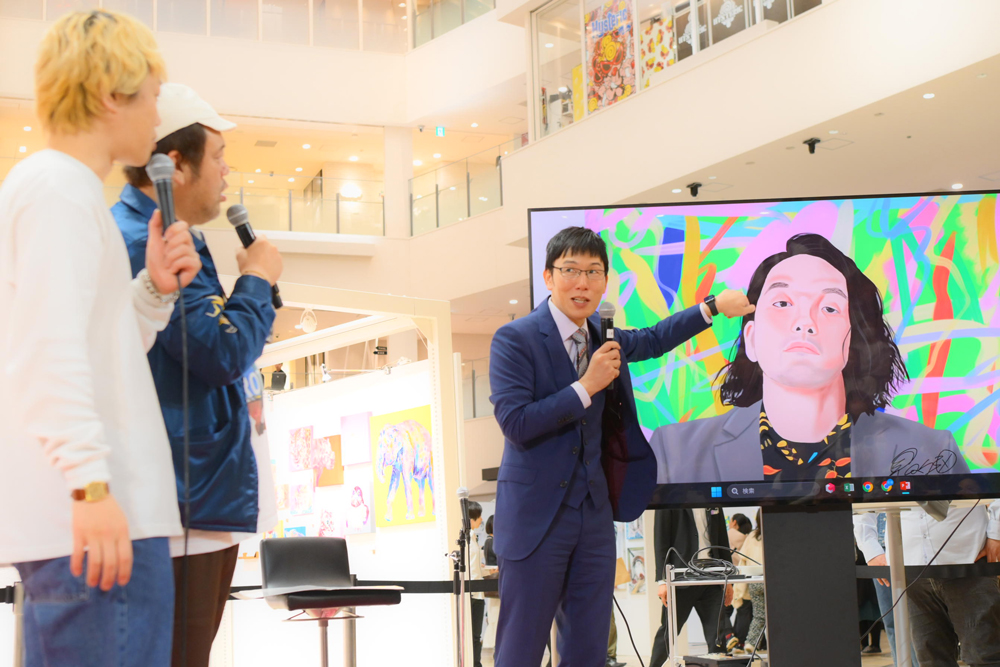 最後には「即興アートコーナー」を実施。来場者をモデルに即興で似顔絵を描く場面も。個性的な作風とユーモアが光り、会場は大いに盛り上がりました。