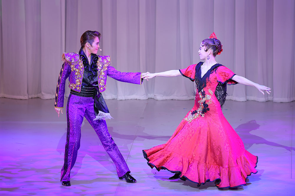 そして大阪で103年の歴史を持つ歌劇団「OSK日本歌劇団」は、トップスター・翼和希さんを筆頭に、この日のためだけのスペシャルレビューショーで魅了。きらびやかなパフォーマンスや歌唱、ラインダンスで会場の空気を一気に華やかな世界へ染め上げていきます。OSK日本歌劇団の名物「桜咲く国」では、会場に駆けつけたファンも一緒になって“桜パラソル”を回してパフォーマンス。